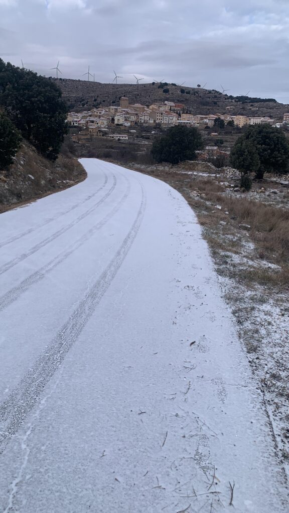 –9.31h. La carretera entre el creuament de la CV-15, a l’altura de Vilar de Canes, i Catí presenta trams amb plaques de gel a la calçada.