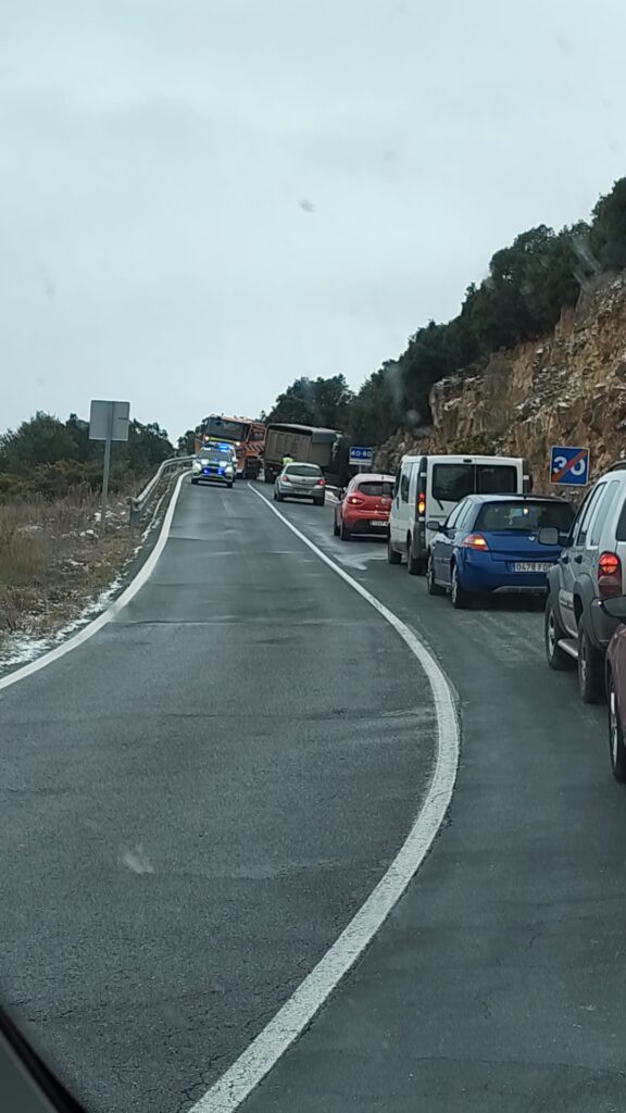 La circulació es troba afectada per un cotxe bolcat que genera un obstacle fix a la carretera CV-15, al punt quilomètric 57,576, a l’altura de Santa Elena (Castelló), en sentit decreixent de la kilometració. L’accident s’ha produït a conseqüència de les condicions adverses per neu a la via.