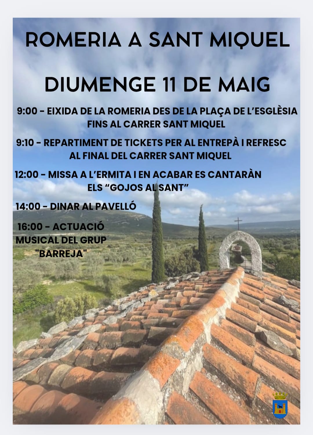 Diumenge que ve, 11 de maig, els veïns i veïnes d’Albocàsser es tornaran a donar cita en una de les celebracions més arrelades del calendari local: la romeria a Sant Miquel. Una rogativa que, durant tota la jornada, combinarà elements devocionals i de tradició amb altres més populars, com un dinar i festa al pavelló durant tota la vesprada.