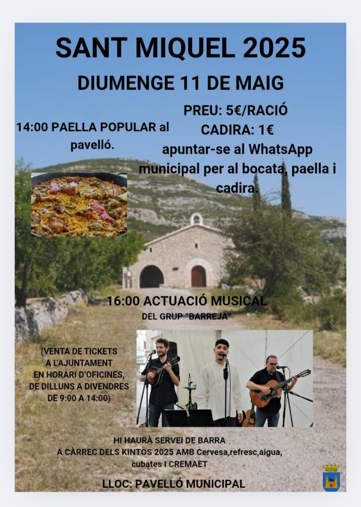 A més del dinar popular, la festa al pavelló municipal inclourà servei de barra a càrrec dels Kintos 2025, amb begudes i el tradicional cremaet, i l’actuació musical del grup Barreja, que amenitzarà la vesprada amb música en directe i ambient festiu a partir de les 16h. L’alcaldessa d’Albocàsser, Isabel Albalat, anima els veïns i veïnes a participar de les activitats i gaudir d’una jornada de retrobament amb les tradicions i de germanor.