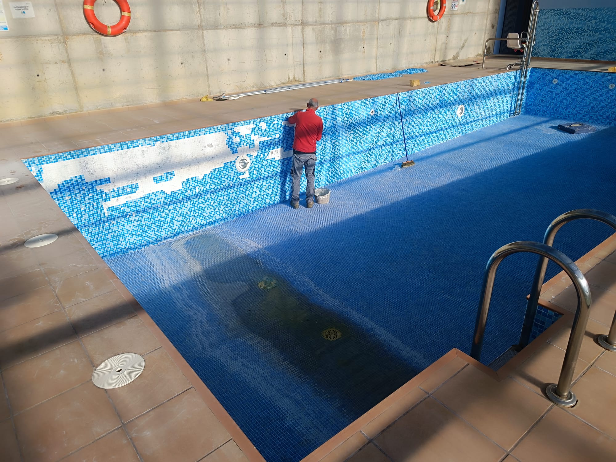 A més de la reposició de les peces de gresite, les tasques de manteniment en la piscina municipal contemplen també la posada a punt de la maquinària. Els treballs aprofiten la fi de la temporada d’estiu i el buidatge de la piscina.