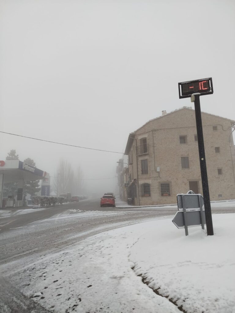 Cantavieja se ha despertado esta mañana con tejados, balcones y calles cubiertas de nieve. La primera nevada de 2025 ha llegado al municipio de la Comarca del Maestrazgo dejando imágenes de gran belleza que se repiten año tras año. La festividad de San Antonio, celebrada el pasado fin de semana en Cantavieja, ha traído el frío y la lluvia. La alerta amarilla por precipitación se mantiene en Cantavieja y en la Comarca del Maestrazgo.