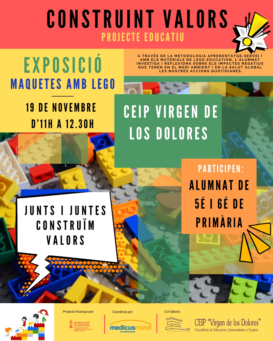 El projecte educatiu Construint Valors, impulsat per la ONGD Medicusmundi Mediterrània, celebrarà dimecres que ve 19 de novembre una exposició de maquetes construïdes amb LEGO en el CEIP Virgen de los Dolores de Benilloba.