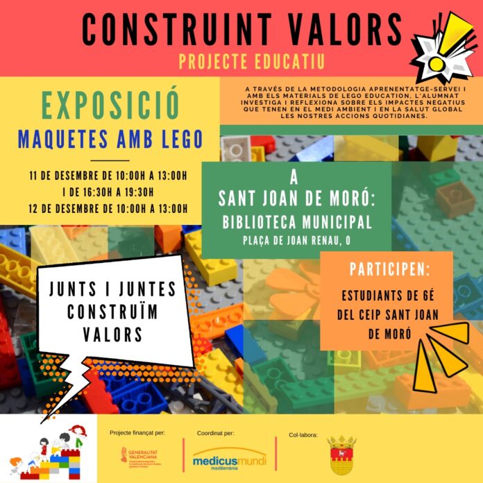 La Biblioteca Municipal de Sant Joan de Moró acollirà aquesta mateixa setmana, els dies 11 i 12 de desembre, l’exposició de maquetes Lego creades per l’alumnat de sisé de primària del CEIP Sant Joan de Moró dins del projecte educatiu ‘Construye Valores’, impulsat per l’ONGD Medicusmundi Mediterrània.