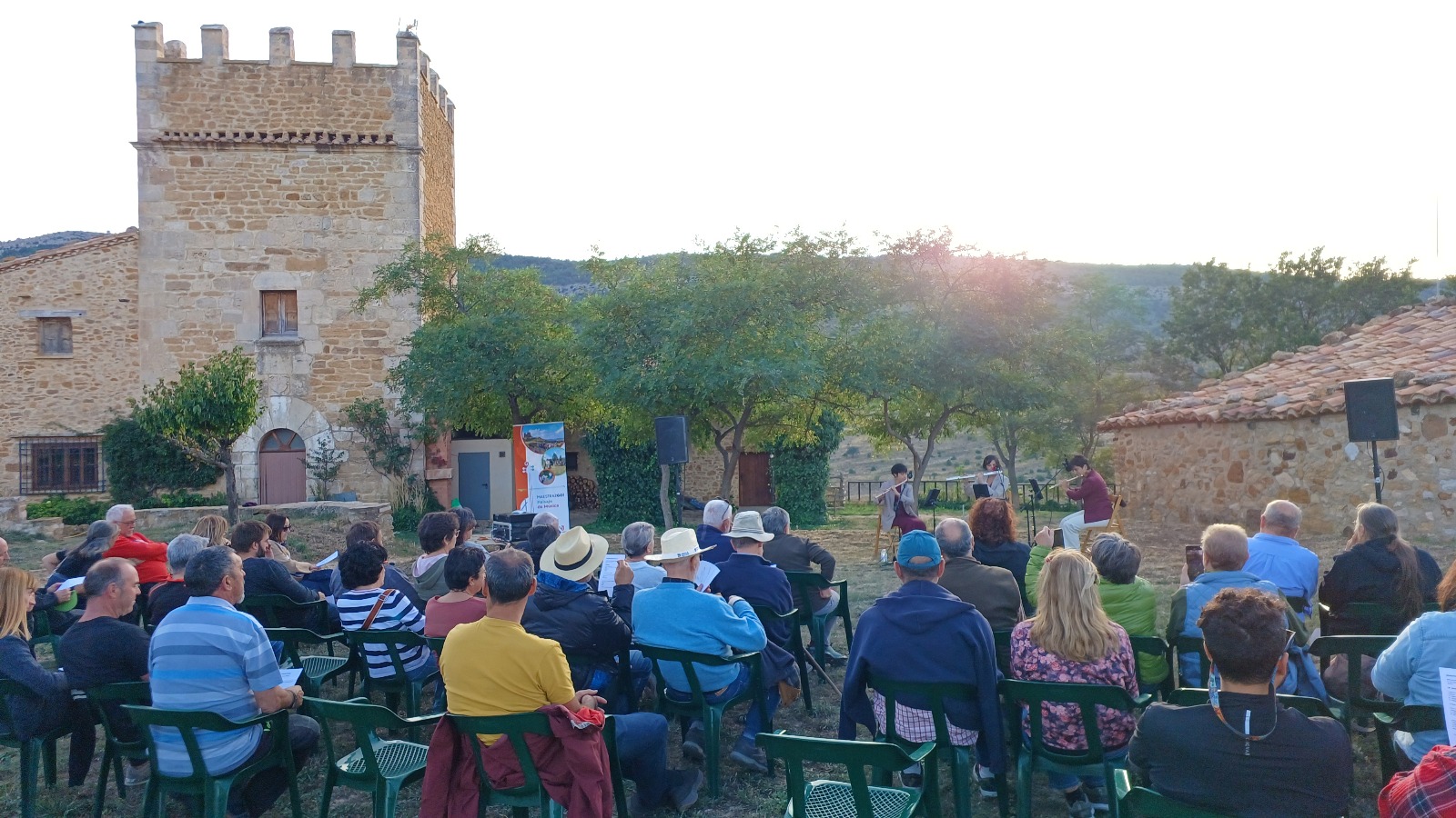La programación continuó el 27 de septiembre en la Era de la Torre Montesanto de Villarluengo, con el concierto del trío Flautàstiques, integrado por tres flautistas de Castellón de la Plana con amplia formación musical y una estrecha amistad. Su propuesta, de reciente creación, ofreció un recorrido sonoro por distintas épocas y estilos, con obras tan reconocidas como El vuelo del moscardón de Rimski-Korsakov o el Divertimento en Do mayor de Mozart, junto a piezas del Barroco, el Romanticismo y composiciones de los siglos XX y XXI. La cita, que reunió a unas 50 personas, se completó con una visita guiada al Convento de Montesanto y su entorno.