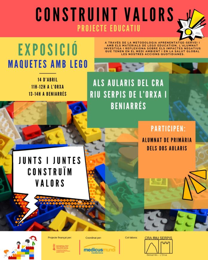 El pròxim 14 d’abril, l’alumnat de primària del CRA Riu Serpis (aularis de l’Orxa i Beniarrés) presentarà una exposició de maquetes fetes amb materials de LEGO EDUCATION com a resultat del projecte ‘Construint Valors’ de l’ONGD Medicus Mundi Mediterrània, basat en la metodologia d’aprenentatge i servei.