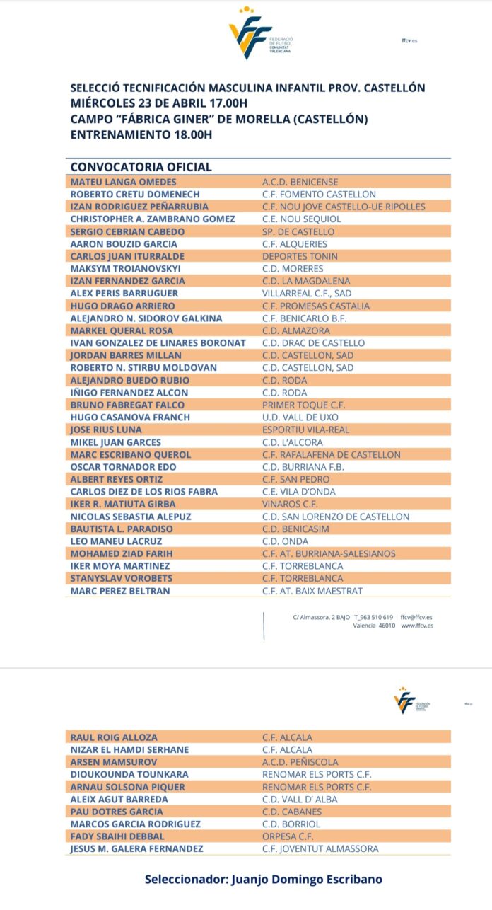 Ahir dimarts, el seleccionador Juanjo Domingo Escribano donava a conèixer a través de la pàgina web de la Federació de Futbol de la Comunitat Valenciana la llista de jugadors convocats. A la mateixa figuren dos jugadors vilafranquins com Arnau Solsona Piquer i Bruno Fabregat Falcó.