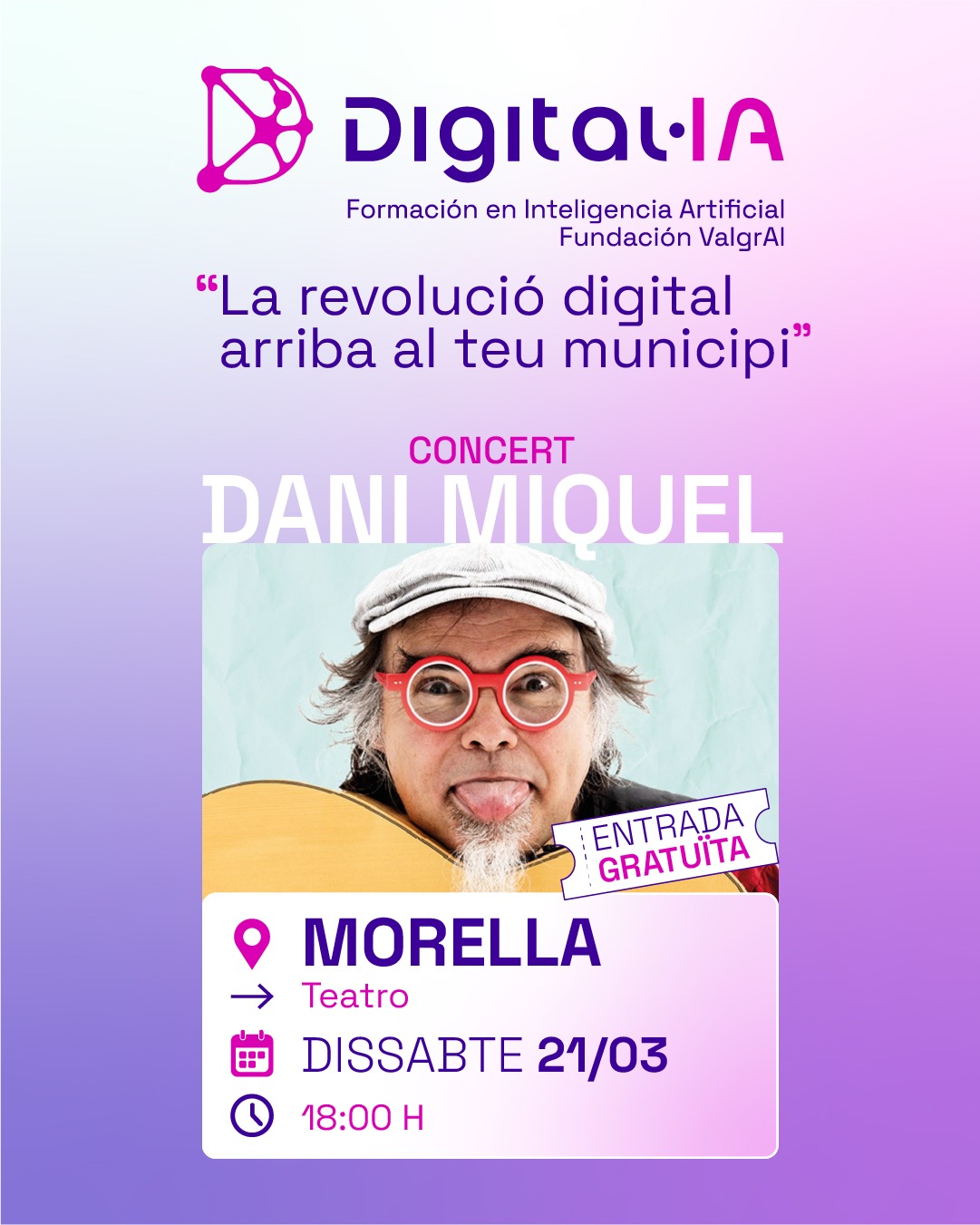 📆 El dissabte 21 de març, concert *La revolució digital arriba al teu municipi* de Dani Miquel a les 18.00 h al Teatre Municipal.