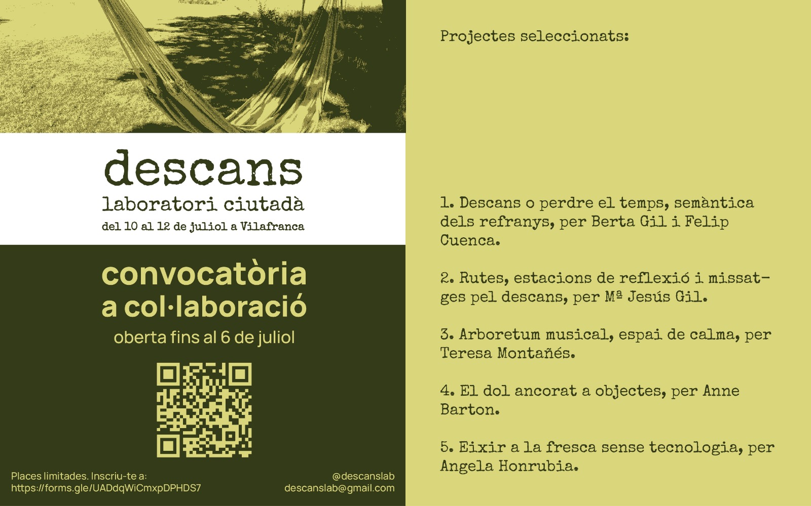 *DESCANS, LABORATORI CIUTADÀ* tindrà lloc a Vilafranca del *10 al 12 de juliol.*