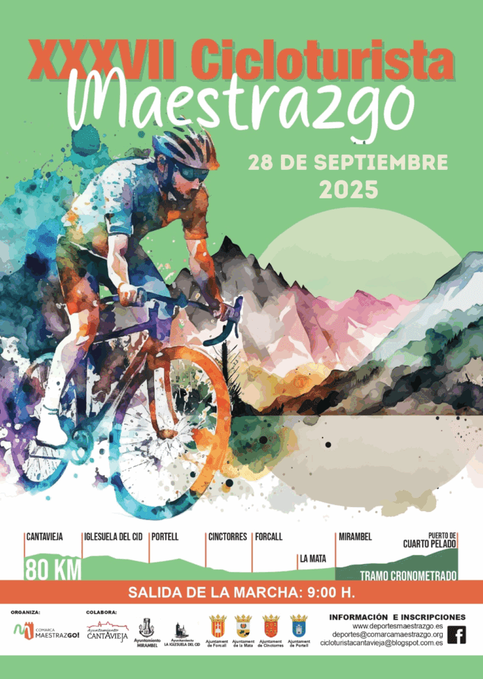 La histórica marcha ciclista XXXVII Cicloturista del Maestrazgo se celebrará el domingo 28 de septimbre. Un especial evento deportivo cuya afianzada trayectoria sigue un año más atravesando parajes de gran valor paisajístico de la Comarca del Maestrazgo.