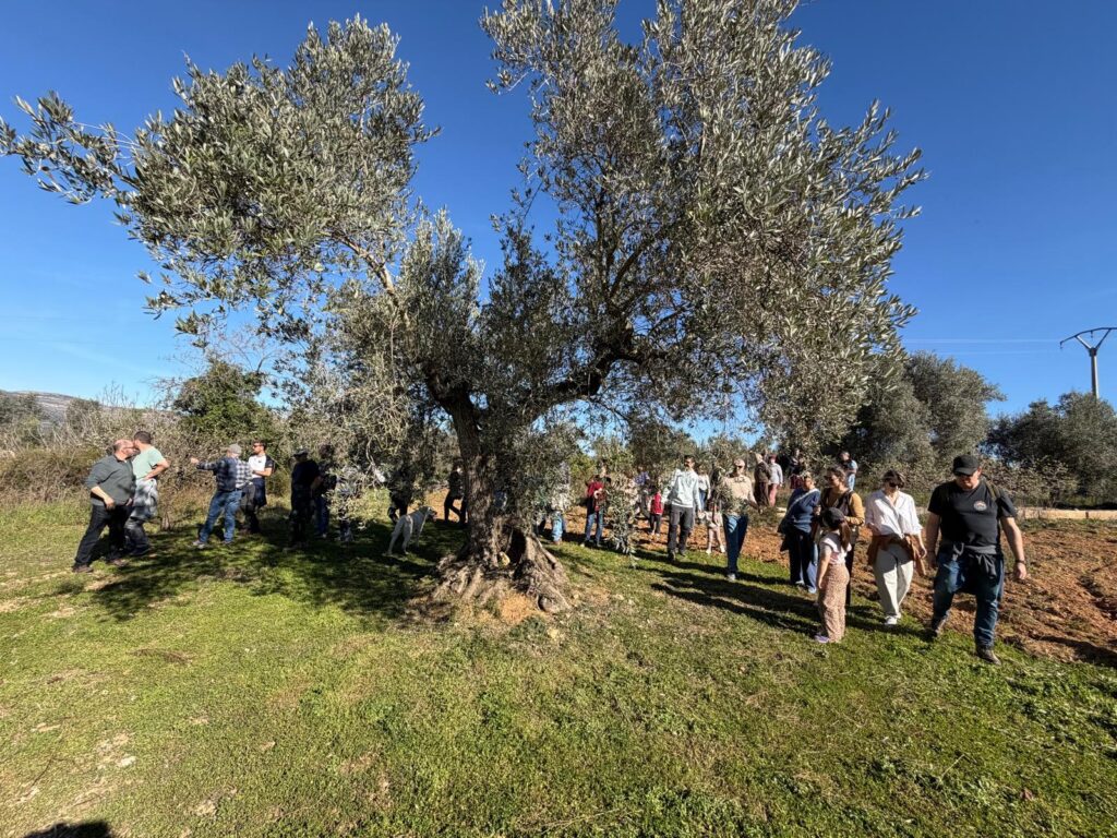 La jornada es va obrir amb una eixida al camp per observar de prop les empremtes que la gelada va deixar en l’oliverar d’Albocàsser. La visita es va fer en una finca amb arbres que encara permeten entendre què va passar el 1956. Sobre el terreny, també es va explicar com es cultivava en aquell moment i quin tipus d’oliveres hi havia abans de la gelada. “No eren arbres grans, però podrien ser centenaris; algun de mil·lenari podria haver, però la gran majoria eren arbres de 100-120 anys”, precisa. A partir d’eixe moment, molts camps es van arrencar o es van abandonar, i el paisatge agrícola va començar a transformar-se.