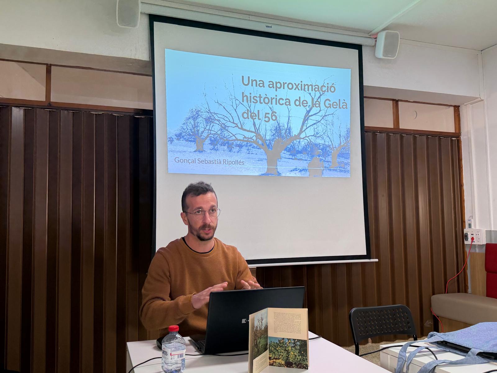 Una altra part important de la programació va ser la conferència Una aproximació històrica de la gelà del 56, a càrrec de Gonçal Sebastià Ripollés, membre de L’Asssegador. La intervenció va ajudar a situar la gelada dins d’un context més ampli de canvi econòmic i social. “Es van ajuntar molts factors que van fer que s’arrancaren els arbres i que molta gent del poble se n’anara cap a les ciutats”, explica.