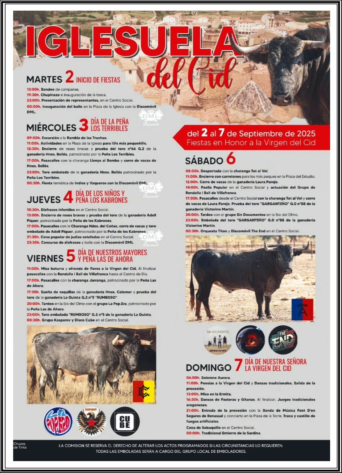 La Iglesuela del Cid se prepara para vivir del 2 al 7 de septiembre sus fiestas en honor a la Virgen del Cid, una semana repleta de actividades culturales, religiosas, taurinas y festivas que reunirán a vecinos y visitantes en torno a la patrona del municipio.