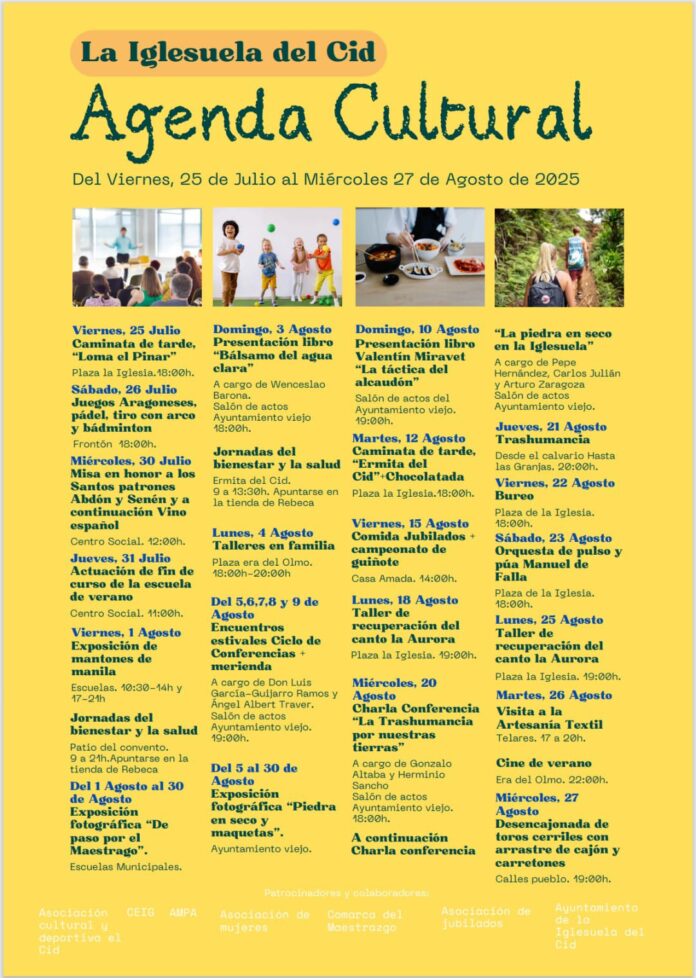 La Iglesuela del Cid se prepara para vivir un verano lleno de actividades con la presentación de su Agenda Cultural 2025, que se desarrollará desde el 25 de julio hasta el 27 de agosto. Organizada por el Ayuntamiento y con la colaboración de diversas asociaciones locales como CEIG, AMPA, la Asociación de Mujeres, la Asociación de Jubilados y la Comarca del Maestrazgo, la programación de este año destaca por su variedad, su enfoque intergeneracional y su vinculación con el entorno y las tradiciones locales.