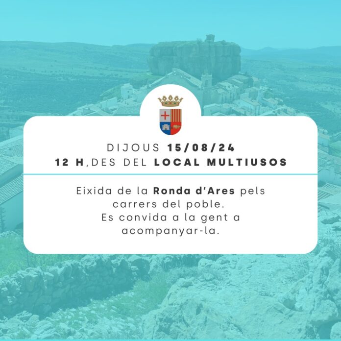 Ares del Maestrat viurà les seues festes patronals des d’avui, dia 16, fins al 22 d’agost. El municipi s’omplirà de festa amb un programa que inclou des d’actes tradicionals fins a propostes més innovadores i activitats per a tots els públics. En dies previs, el municipi ha gaudit d’esdeveniments culturals com a teatre infantil, presentacions literàries, cinema d’estiu i el dia dedicat a les persones jubilades.