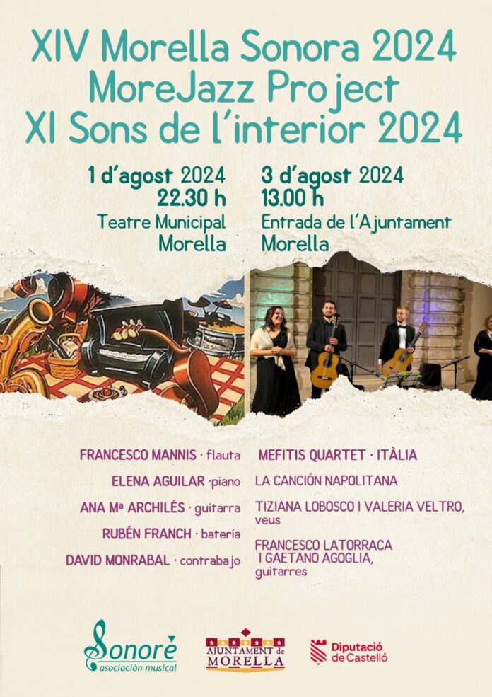 El dijous 1 d’agost, concert de Morella Sonora a les 22.30 h al Teatre Municipal.