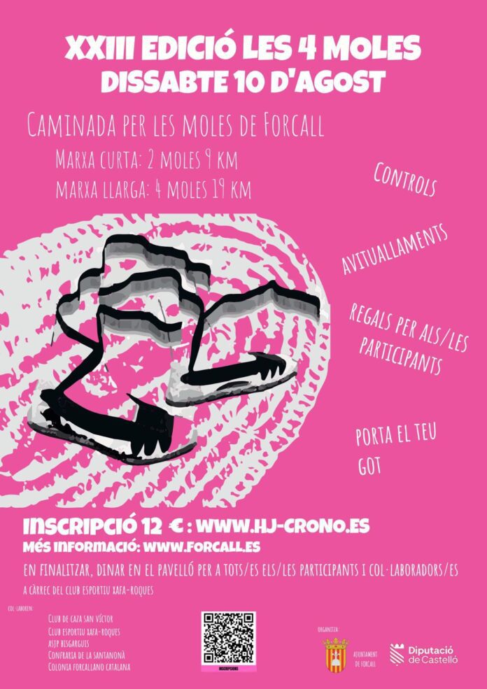 ♀El pròxim 10 d’agost tindrà lloc la XXIII Edició de les 4 moles, les inscripcions s’han de realitzar en el següent enllaç: https://hj-crono.es/eventos/xxiii-edicio-de-les-4-moles-forcall