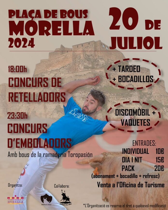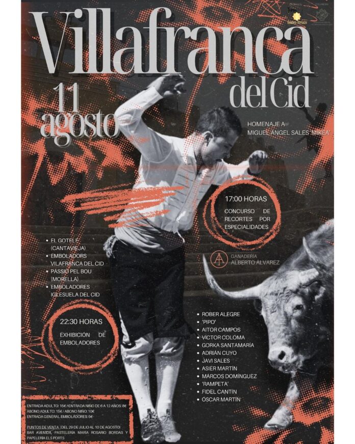 La Diputació de Castelló ha organitzat una novillada de l’Escola Taurina de la ciutat per a dur a terme a Vilafranca el diumenge 14 de juliol a les 19.30 h.