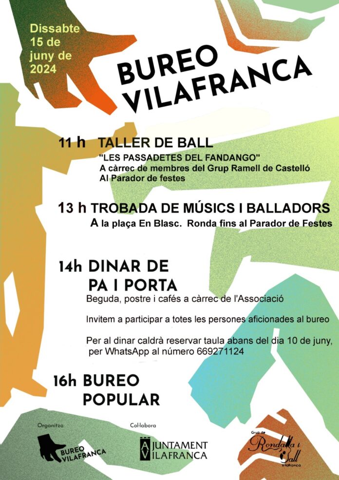 El passat dissabte, 15 de juny, Vilafranca va viure una jornada dedicada al bureo. L’esdeveniment, organitzat pel Grup de Rondalla i Ball de Vilafranca, va comptar amb una gran participació de públic i va rebre una molt bona acollida.