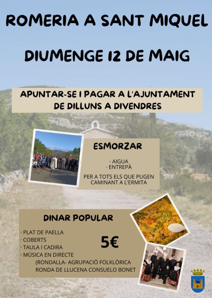 Finalment, per a completar l’oferta, hi haurà activitats religioses, com les rogatives a Sant Miquel i Sant Isidre, celebrades el 5 i l’11 de maig, respectivament. En l’última es beneirà el Terme al Peiró.
