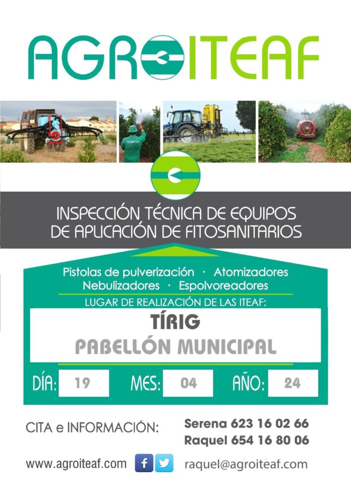 Demà, 19 d’abril hi haurà inspecció tècnica d’equips d’aplicació de fitosanitaris a Tírig