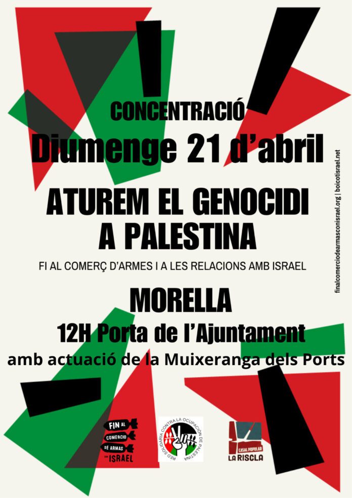 El diumenge 21 d’abril, concentració Aturem el genocidi a Palestina a les 12.00 h a la plaça de l’ajuntament.