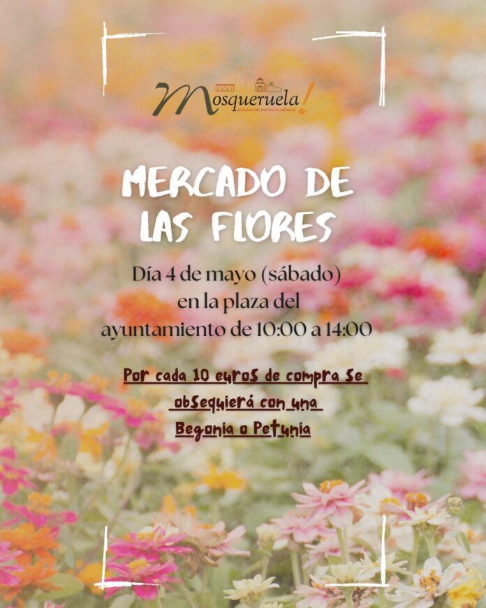 El próximo 4 de mayo (sábado) celebraremos en Mosqueruela un MERCADO DE LAS FLORES . Ven y compra tus flores de primavera y aprovecha para llevarte el regalo del día de la madre. Ademas por cada 10 euros de compra una Petunia o una Begonia de regalo.