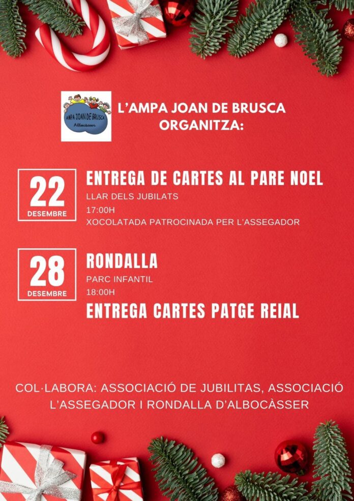 La vesprada del 29 tindrà lloc el clàssic concert de nadales de Dolces Cançons, a la Casa de la Cultura, que amenitzarà la vesprada del divendres amb les nadales més conegudes que faran cantar al públic.