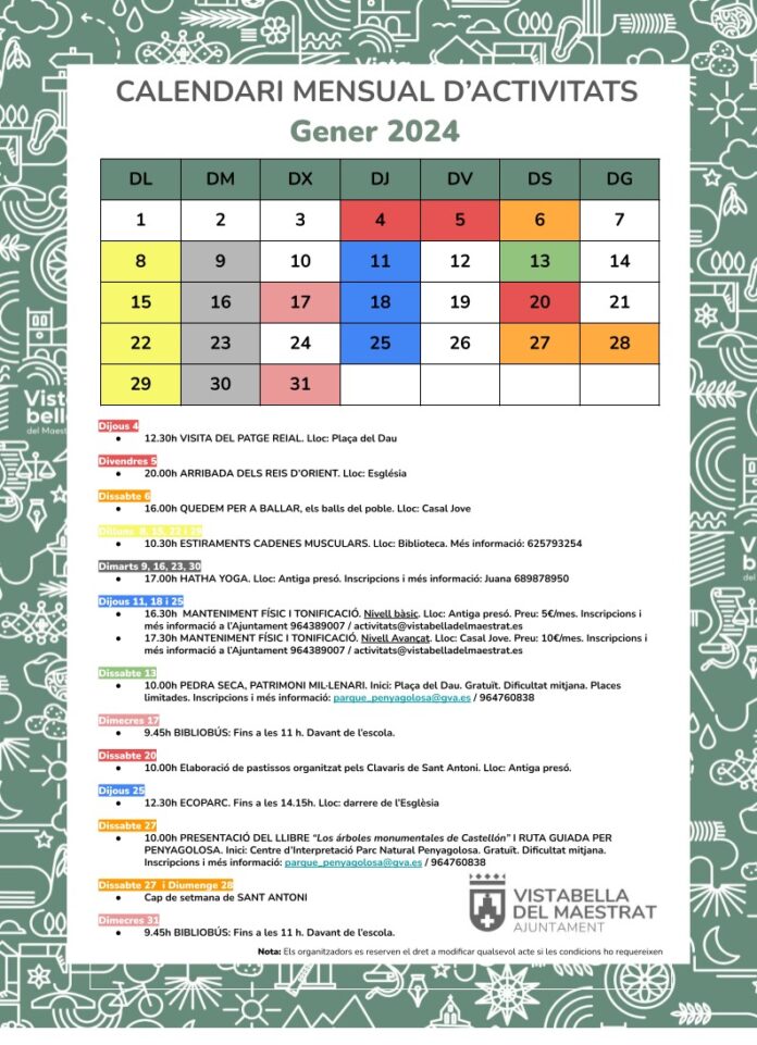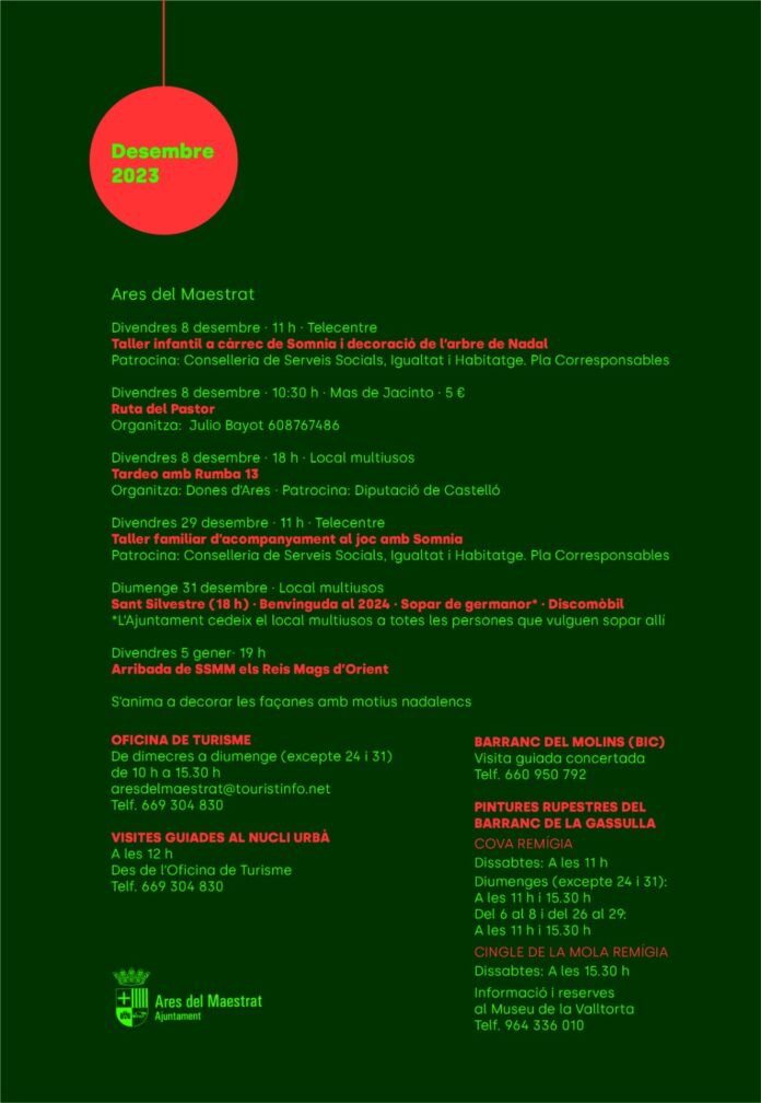 L’any 2023 està a punt de finalitzar i en Vistabella del Maestrat s’ha preparat una agenda d’oci per acomiadar-se amb esport i música com a protagonistes. El dissabte 30, a partir de les 18h, els Joves Vistabella patrocinen el primer acte musical del cap de setmana. El grup Sarao al Casal Jove inaugurarà la programació, la qual continuarà el diumenge 31 amb la popular cursa de Sant Silvestre. Xiquets, xiquetes i adults podran participar disfressats a les 18h, amb eixida des del Casal Jove. A continuació s’organitza un ‘tardeo’ amb DiscoNight. L’adéu definitiu al 2023 serà al Casal Jove amb una nit musical que també servirà per a començar el 2024 amb alegria i diversió a Vistabella del Maestrat.