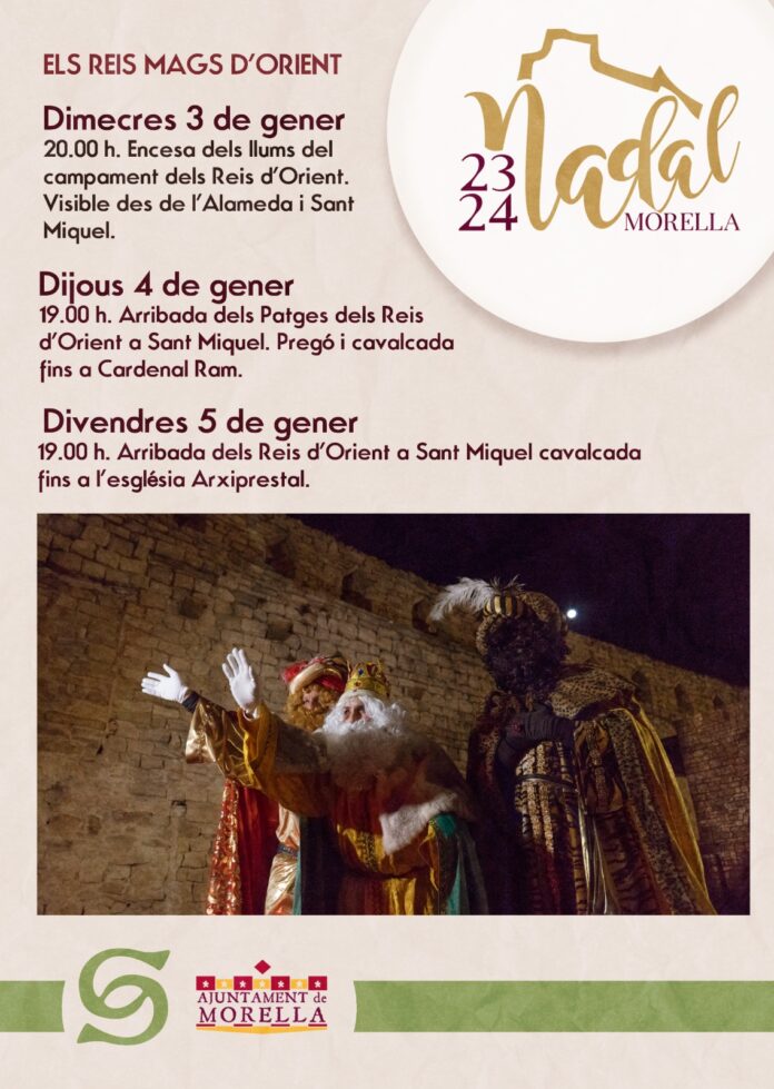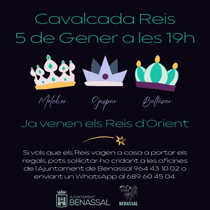 Enguany, els Reis arribaran per l’Avinguda de Castelló, on començarà el recorregut, a les 19 h, fins a la placeta de l’Església. Ací es portarà a terme el Betlem vivent amb la participació dels xiquets i xiquetes del poble i amb la presència dels tan esperats Reis Melcior, Gaspar i Baltasar.