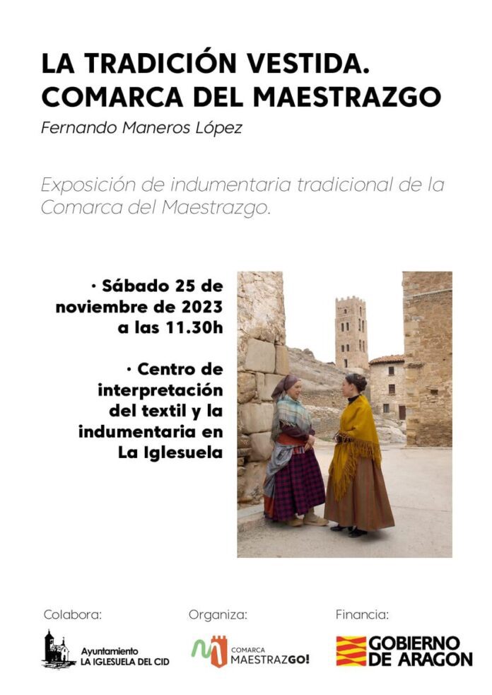 El sábado 25 de noviembre se presentó en el Centro de Interpretación del Textil y la Indumentaria de La Iglesuela del Cid la exposición ‘La Tradición Vestida’ promovida por el Área de Patrimonio Cultural. La muestra está financiada por el Gobierno de Aragón a través de una ayuda para ampliar y diversificar la oferta cultural en áreas no urbanas, financiada con cargo al Plan de Recuperación, Transformación y Resiliencia y que forma parte de un proyecto más amplio que incluye conciertos de música inspirados en las tradiciones de la zona, así como también talleres musicales con todos los colegios de la comarca.