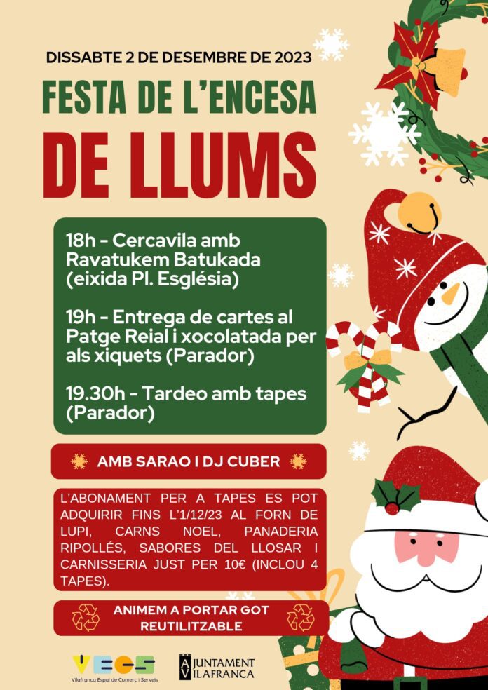 Vilafranca Espai de Comerç i Serveis i l’Ajuntament de Vilafranca han presentat el cartell de la Festa de l’Encesa de les Llums de Nadal, que tindrà lloc en la vesprada-nit del dissabte 2 de desembre. Es tracta d’un acte que, des de la seua creació, s’ha convertit en la porta que obri les festes nadalenques al poble. L’entitat, que agrupa a mig centenar de comerciants i professionals de la vila i el consistori volen posar en relleu, amb aquest acte, la importància de donar vida als negocis del poble en aquestes dates tan especials.