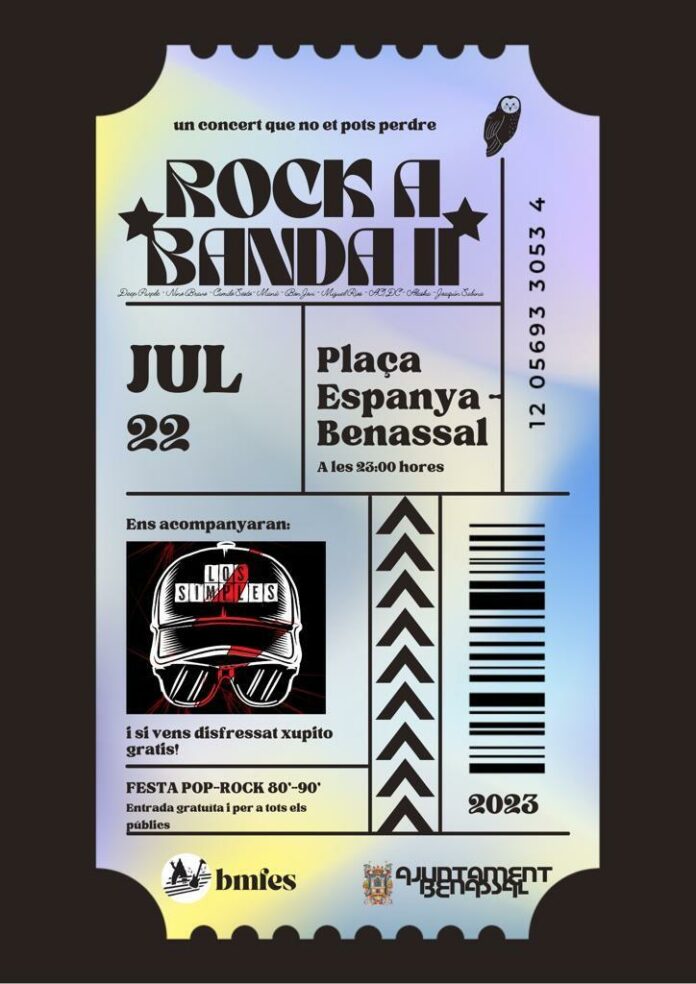 La primera edició de Rock a Banda es va celebrar fa 4 anys a Benassal, quan va recollir una gran crítica i valoració per tot el veïnat. Un temps després, amb pandèmia inclosa, s’ha pogut celebrar a l’aire lliure. La banda de música de Benassal va demostrar el seu excel·lent nivell, i el públic ho va recompensar amb un fort aplaudiment. Després del concert va continuar la diversió amb música pop i rock dels anys 80 i 90. L’Ajuntament de Benassal dóna l’enhorabona al director Fortea per la iniciativa del concert i a tots els músics i músiques de la Banda de Música Font d’En Segures per l’actuació.