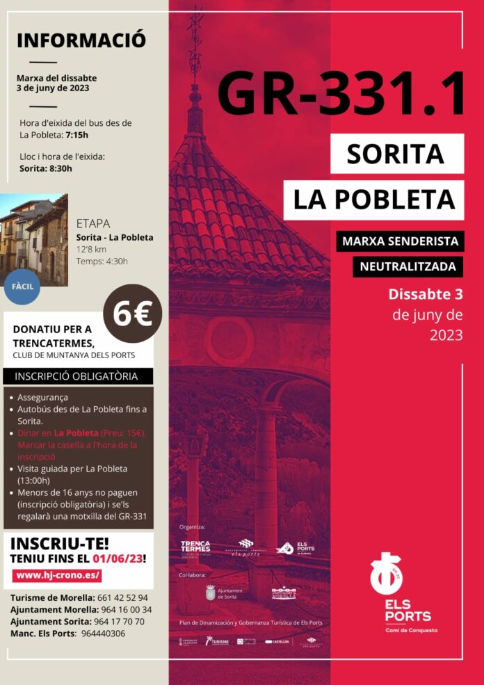 Inscripcions al següent enllaç: https://www.hj-crono.es/eventos/marxa-gr-331-1-sorita-la-pobleta