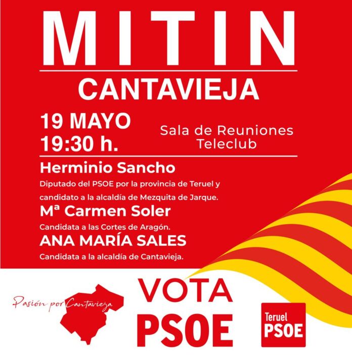 A última hora del día, el equipo de campaña se trasladó a Mosqueruela para acompañar a la candidatura municipal ante un salón de actos lleno, donde los últimos asistentes tuvieron que seguir el acto desde el pasillo.