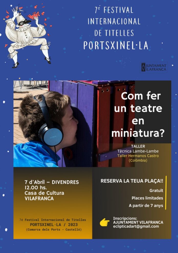 La setena edició del Festival Internacional de Titelles Portsxinel·la està a punt d’arrancar. Del 5 al 16 d’abril d’aquest 2023 prendrà 14 localitats de la comarca castellonenca dels Ports amb els seus espectacles per a totes les edats i els seus tallers. Una festa cultural amb el teatre de titelles com a base que al mateix temps serveix per a la promoció turística d’aquesta bella zona muntanyenca d’interior. Diferents tècniques de maneig de titelles al servei d’entretinguts i didàctics arguments faran les delícies dels qui decidisquen acostar-se a qualsevol dels espectacles que ha preparat Eclíptica d’Art o, com ha ocorregut en anys anteriors, traçar-se una ‘ruta titellaire’ per a gaudir amb el major nombre possible d’obres. Una celebració per a veïns i turistes, perquè com indica el lema de Portsxinel·l’enguany: “Tots som comarca” (Tots som comarca). Morella, Vilafranca, Forcall, Cinctorres, la Todolella, Portell de Morella, La Mata, Castell de Cabres, Villores, Palanques, Sorita, Vallibona, Herbers i Olocau del Rei són les localitats que participen en aquesta setena edició, més internacional que mai abans, amb presència de companyies de Colòmbia (Taller Hermanos Castro, Gente de Nadia & Co, Manicomio de Muñecos i Jabrú Teatre de Titelles), Cuba (La Mar Esperanza), Portugal (Varazim Teatre), Mèxic (Títeres La Matatena) i l’Uruguai (Coriolis Teatro de Obetos). La Comunitat Valenciana estarà representada per les castellonenques LAPinzón i Xarop Teatre, mentre que de la resta de l’estat espanyol acudiran Tirita Teatro (Castella-la Manxa), A la Sombrita (Andalusia), Rauxa Teatre (Catalunya) i Sol y Tierra (Madrid).