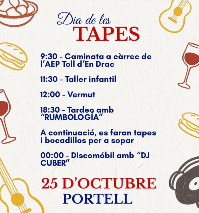 El pròxim 25 d’octubre, Portell viurà una jornada plena d’activitats, música i bon ambient amb motiu del Dia de les Tapes, una cita organitzada per la Comissió de Festes amb la col·laboració de l’Ajuntament i l’AEP Toll d’En Drac.