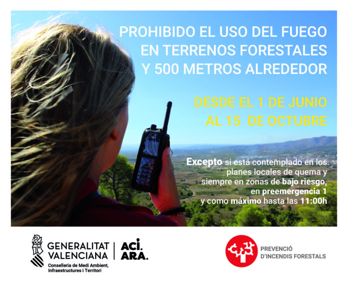 La Direcció General de Prevenció d’Incendis Forestals de la Generalitat Valenciana ha comunicat als ajuntaments la prohibició de fer cremes de residus vegetals agrícoles en terrenys forestals i en una franja de 500 metres al seu voltant durant el període comprés entre l’1 de juny i el 15 d’octubre. Aquesta mesura forma part de l’estratègia de prevenció d’incendis en una època marcada per l’augment de les temperatures i la sequedat de la vegetació.