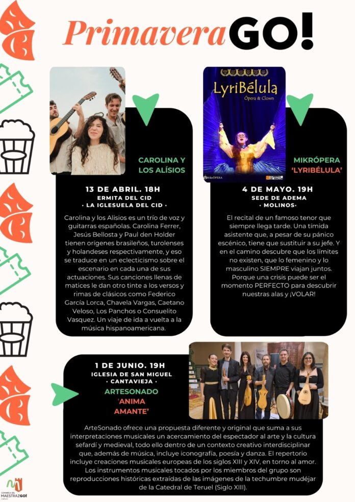 La Comarca del Maestrazgo desarrolla por segundo año el ciclo “Primavera GO!”, que tendrá lugar los días 13 de abril, 4 de mayo y 1 de junio en diferentes localidades.