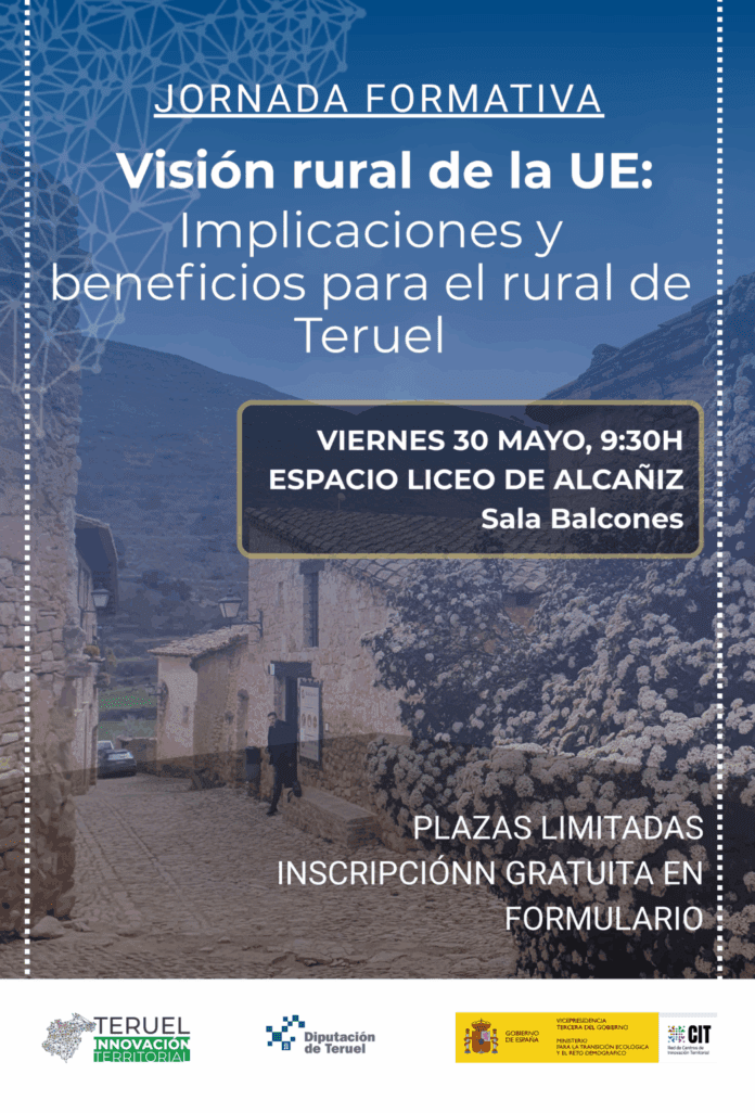 El Centro de Innovación Territorial (CIT) de Teruel celebrará los próximos 30 y 31 de mayo dos jornadas formativas en Alcañiz y Teruel con el objetivo de acercar las políticas y fondos europeos a los agentes del entorno rural de la provincia. Las sesiones están dirigidas a asociaciones, entidades locales, emprendedores y profesionales del tercer sector interesados en aprovechar los recursos que la Unión Europea pone a su disposición.