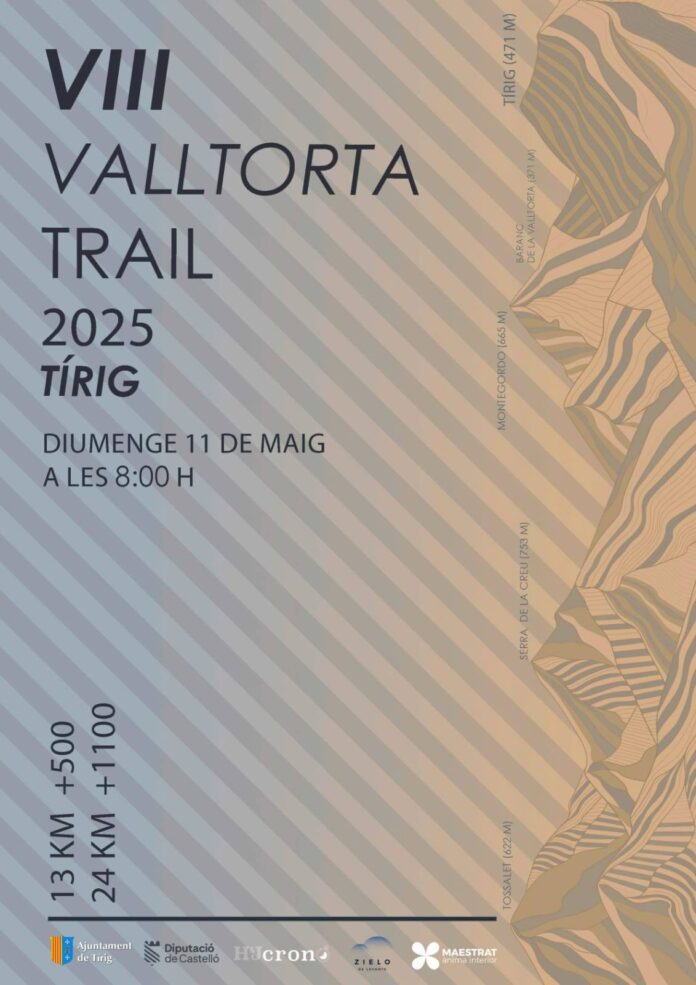 El pròxim diumenge 11 de maig, la localitat de Tírig acollirà la vuitena edició de la Valltorta Trail, una prova de muntanya que ja s’ha convertit en una cita ineludible per a les persones amants de l’esport i la natura. Organitzada per l’Ajuntament de Tírig amb el suport tècnic de H&J Crono i la col·laboració del Tírig Team, la competició reunirà desenes de participants que recorreran els camins i sendes de l’entorn natural del barranc de la Valltorta.
