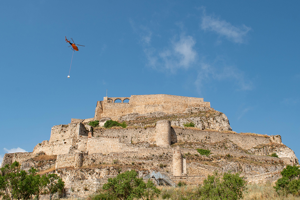 El primer edil ha explicat que “després de vore diferents opcions, utilitzar un helicòpter ha sigut una bona opció per a tindre ràpidament el material a la plaça d’armes i que continuen les obres en esta zona del castell”. A més, ha comentat que “durant les setmanes anteriors, havien fet els treballs arqueològics i ara començaran els treballs de recuperació dels edificis situats en la part més alta del monument”. Finalment, ha volgut recordar que “s’actua també en les solsides de la muralla situades a l’entrada provisional, així com en la futura entrada per dalt de Sant Francesc”.