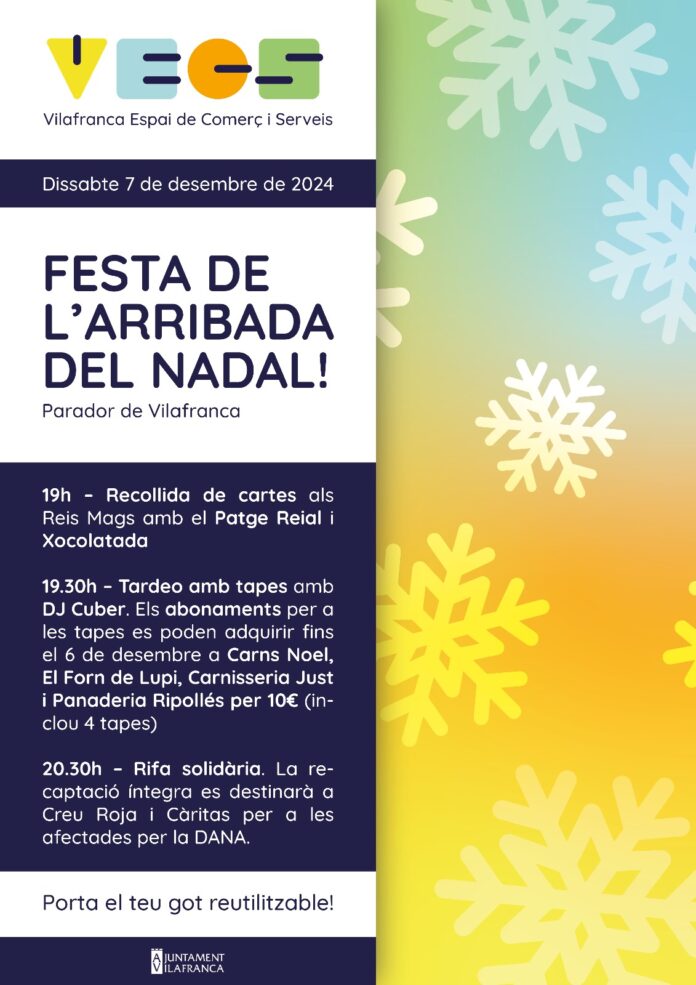 Nadal arribarà a Vilafranca aquest cap de setmana amb la festa de benvinguda d’aquesta especial època. Com cada any, Vilafranca Espai de Comerç amb la col·laboració de l’Ajuntament del municipi, organitza aquesta jornada en què es rep Nadal amb l’arribada del Patge Reial, una picadeta i música.