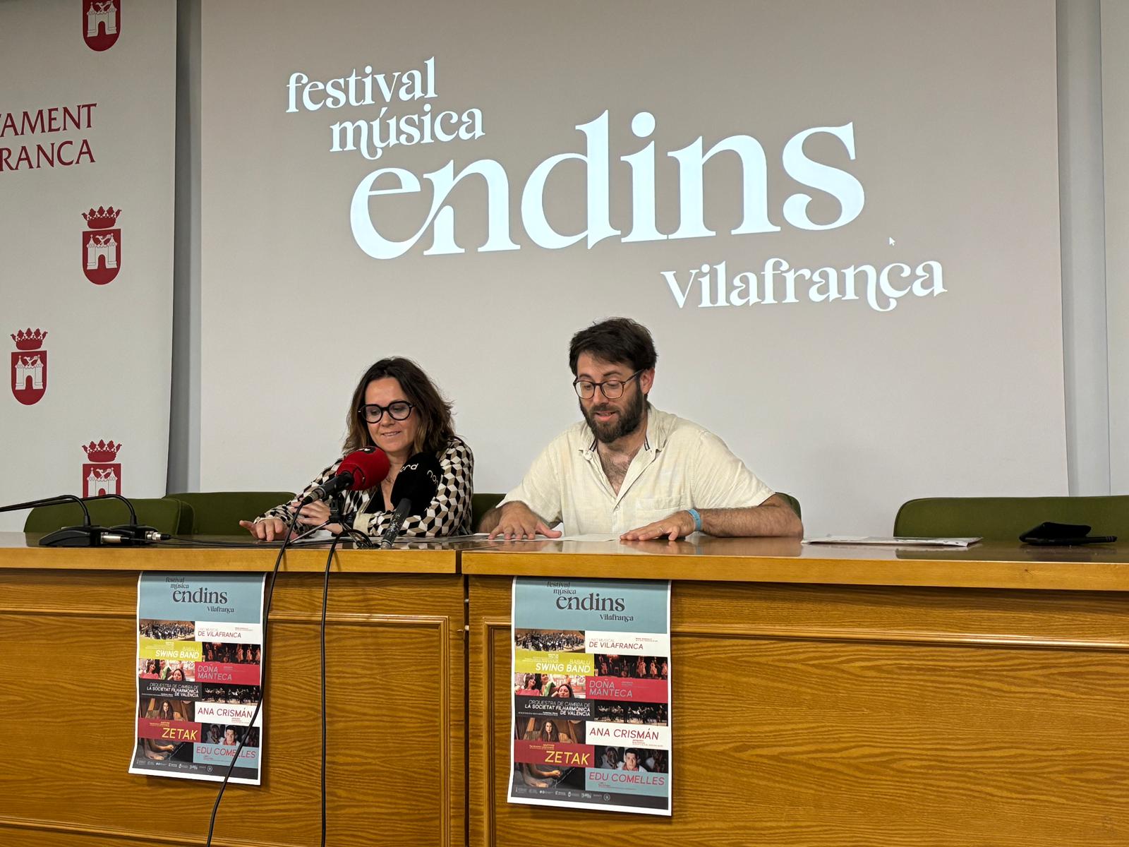 El regidor de Cultura, Carlos Álvarez, ha presentat la programació d’aquesta nova aposta musical de Vilafranca, juntament amb la tècnica de l’àrea, Ana Querol. “Amb Endins, volem continuar donant vida a Vilafranca durant els mesos d’estiu, amb una proposta eclèctica i integradora. Un nou festival que abasta tot tipus de públics i sensibilitats, en el qual els músics i creadors locals tindran també molt a dir”, explica Álvarez. De fet, el cicle l’obrirà la Unió Musical de Vilafranca, amb la Simfonia n.7 de Mahler, en un reflex clar del compromís de Vilafranca pel talent autòcton.